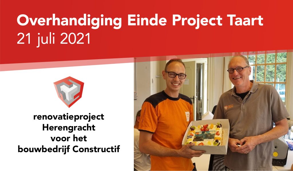 Het is weer tijd voor de beroemde Einde Project Taart!In opdracht van Hillson verzorgden wij de afgelopen 10 maanden de toegangscontrole, de logistieke ondersteuning en het toezicht op de bouw op het renovatieproject Herengracht 434 (Richemont) voor het bouwbedrijf Constructif. Constructif heeft deze renovatie uitgevoerd terwijl Richemont in andere delen van het pand gewoon in bedrijf was, een hele opgave, mede omdat de beveiligingsmaatregelen van dit bedrijf in tact moesten blijven.