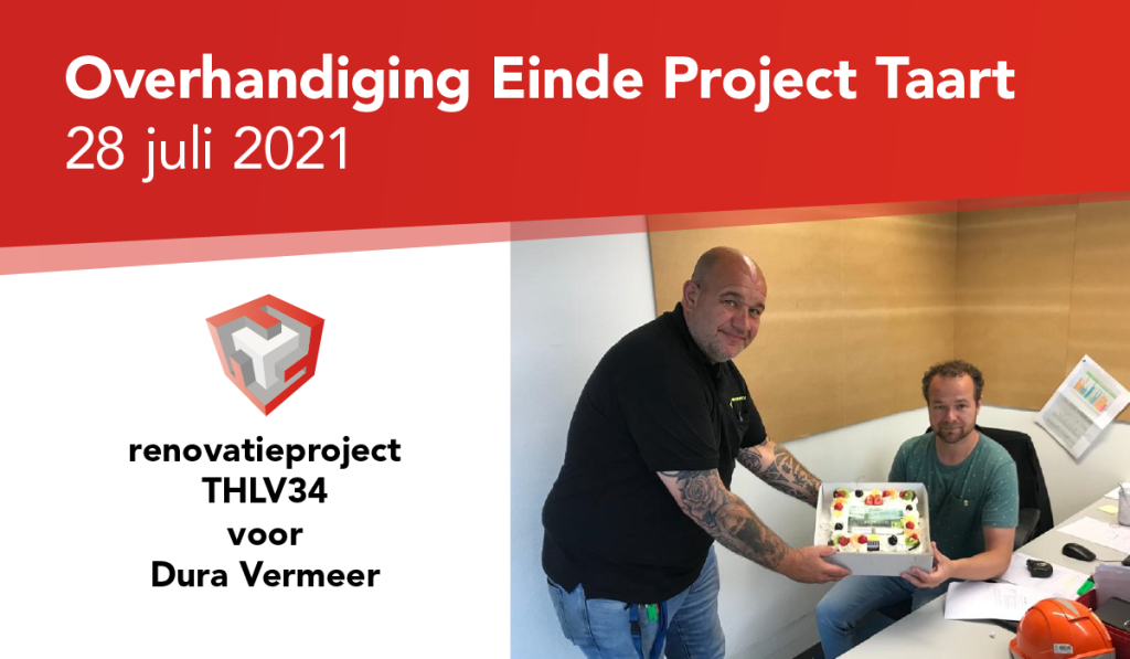 Er komen kantoorruimtes voor circa 75 medewerkers. Ook wordt rekening gehouden met de ontvangst van bezoekers zoals scholieren, dagjesmensen en gasten.Op de foto neemt uitvoerder Tristan de Vos de Einde Project Taart in ontvangst van Gerben. Wij wensen alle medewerkers van de Eerste Kamer en de Raad van State heel veel werkplezier op deze prachtige locatie en bedanken Dura Vermeer voor de zeer prettige samenwerking.